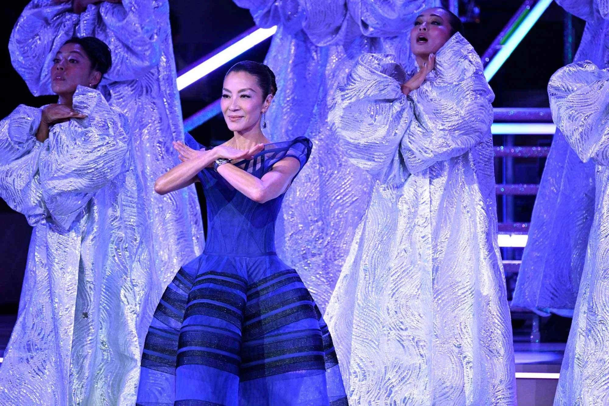 From the moment the doors opened, the lobby buzzed like a pre-show backstage. Families arrived in matching green and black suits and gowns, friends compared homemade Glinda crowns, and entire rows shimmered with emerald sequins. The crowd arrived ready to defy gravity, and the cast including Cynthia Erivo, Ariana Grande, Jeff Goldbum, Michelle Yeoh, Bowen Yang, Marissa Bode, Ethan Slater and director Jon Chu met them with warmth and playfulness. Performers reached out from the stage for high-fives, led call-and-response moments, and even invited audience members to join simple choreography during big ensemble numbers. In a surprise highlight, Ariana Grande, radiant as Glinda, performed “Popular” alongside an ultimate fan, turning the Dolby into a massive sing-along.